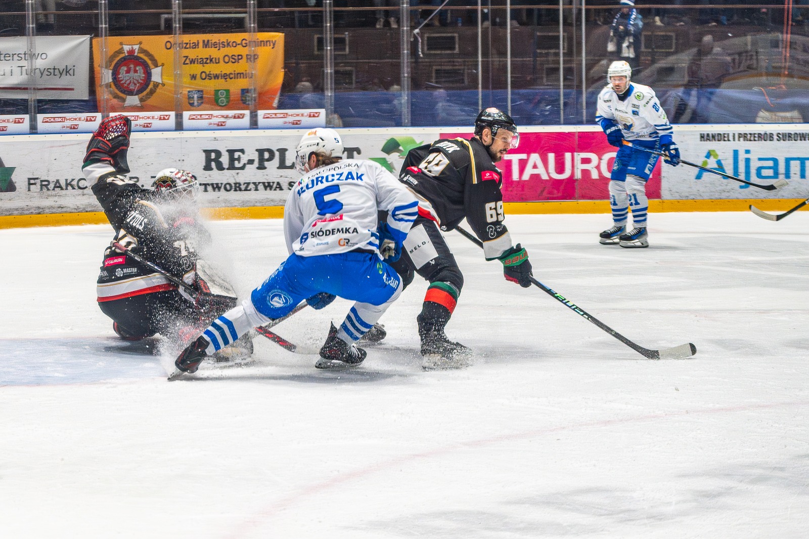 Po zaciętym i dobrym jakościowo meczu Unia Oświęcim pokonała ECB Zagłębie Sosnowiec 4:3 po rzutach...