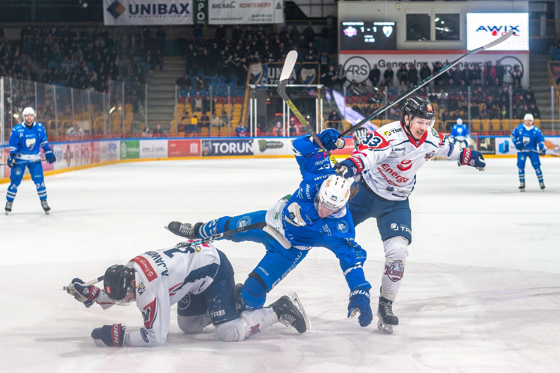 W trzecim meczu ćwierćfinału play-off Unia Oświęcim przegrała na wyjeździe z KH Energą Toruń 1:2....