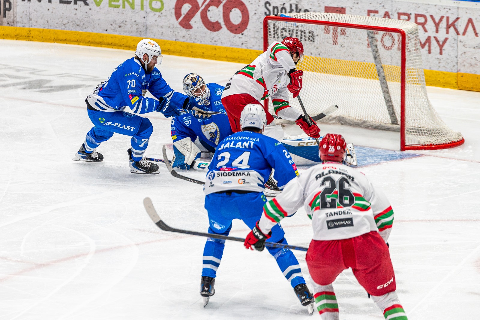 W meczu 10. kolejki TAURON Hokej Ligi sezonu 2025/2026 Unia Oświęcim przegrała w delegacji z ECB Zagłębiem Sosnowiec 1:5. Oto pięć najlepszych ujęć z tego starcia. Autorem fotografii jest Jarosław Fiedor.