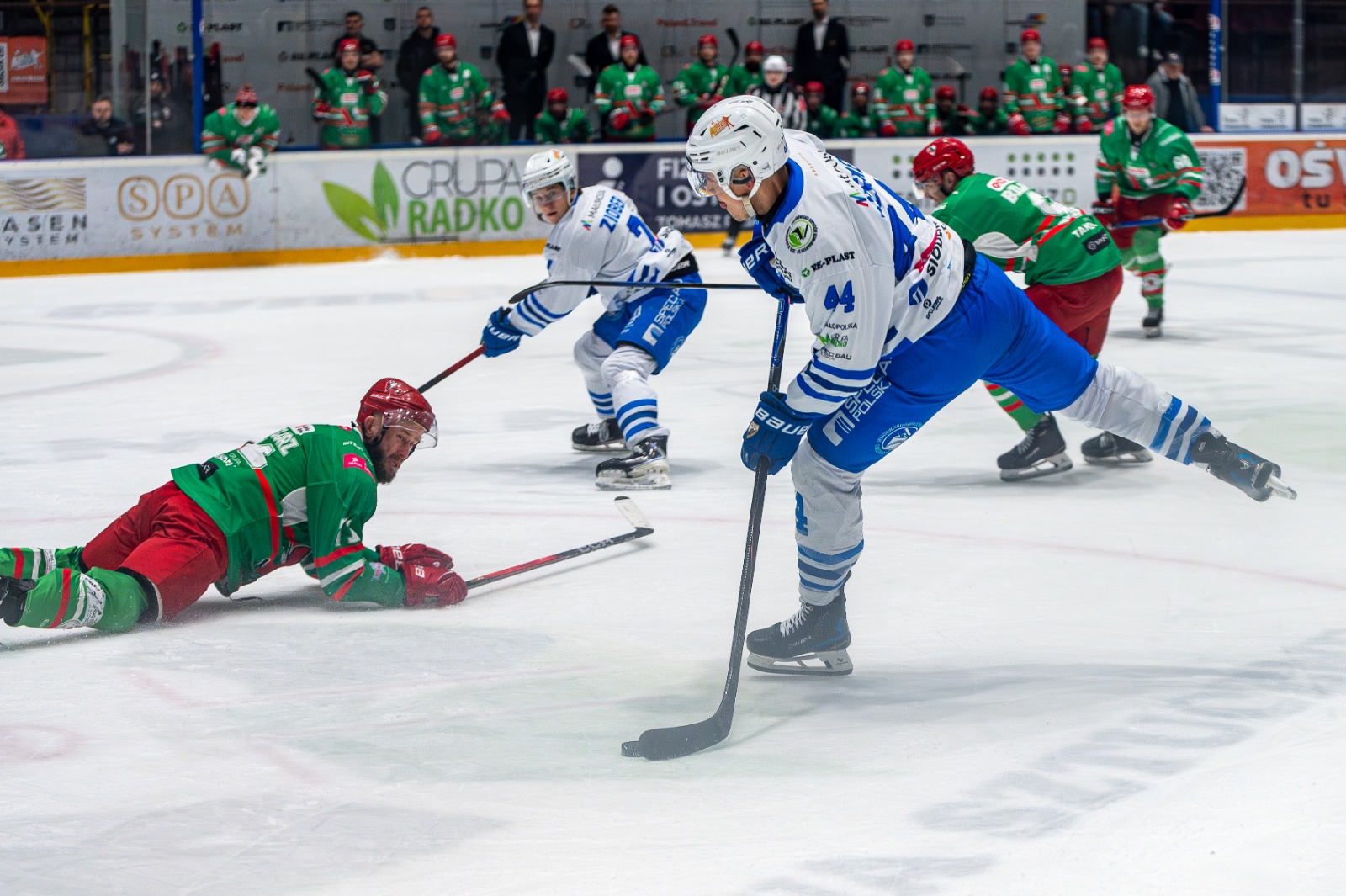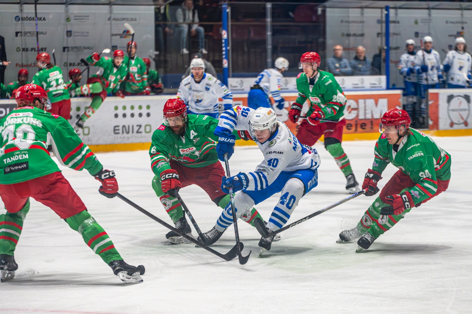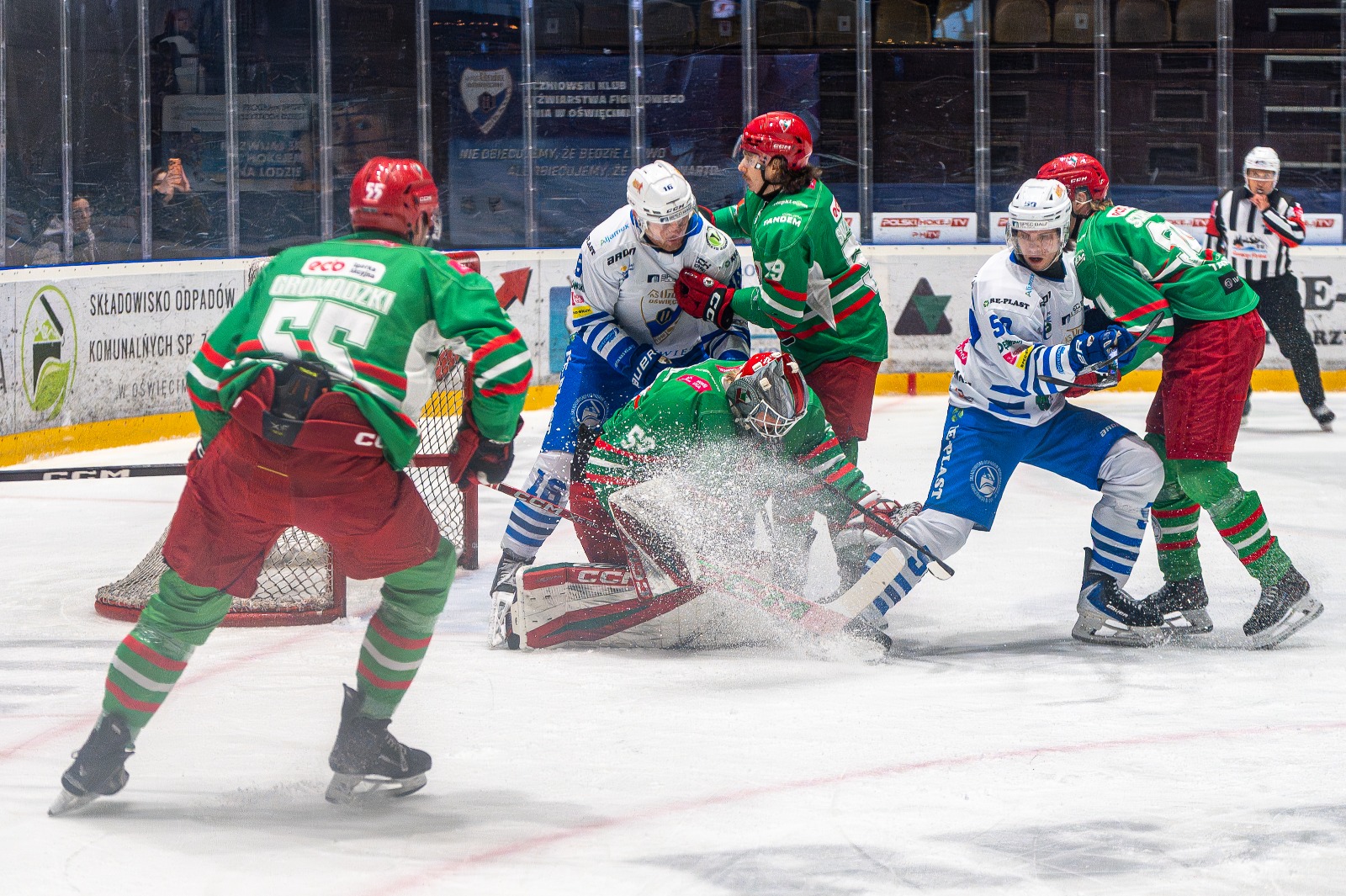 W pierwszym meczu o trzecie miejsce Unia Oświęcim przegrała na własnym lodzie z ECB Zagłębiem Sosnowiec. Oto pięć najlepszych ujęć z tego starcia. Autorem fotografii jest Jarosław Fiedor.