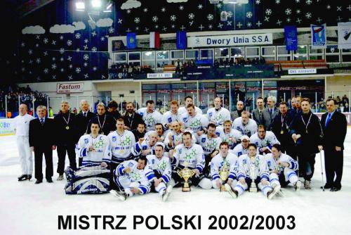 Mistrzostwo Polski w 2002 r. zostało zdobyte po pasjonujacej walce z finałowym rywalem GKS Katowice. Dopiero w siódmym spotkaniu hokeisci Unii przechylili szalę zwycięstwa na swoja stronę i po raz piaty z rzędu, a szósty w historii założyli mistrzowska koronę. Rok pó?niej, finałowa walka o tytuł mistrza kraju ponownie została stoczona z zespołem GKS Katowice. Tym razem jednak, nie było już żadnych watpliwości komu należy się miejsce z numerem 1. Unia pewnie sięgnęła po szósty z rzędu i siódmy w historii klubu tytuł. Wg. kibiców sezon 2003/04 był jednym z najlepszych w historii.