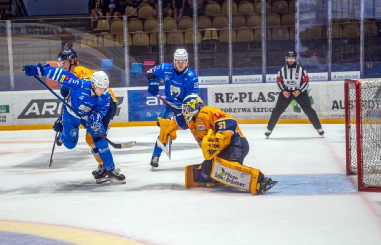 Unia Oświęcim odniosła efektowne zwycięstwo nad Lausitzer Füchse. Biało-niebiescy pokonali niemieckiego drugoligowca 6:2, a swój debiut golem okrasił Joe Morrow. Kanadyjczyk, mający w swoim dorobku 173 mecze w NHL i występy w silnych ligach europejskich, w 13. minucie otworzył wynik spotkania, wieńcząc ładną akcję Erika Ahopelto i Miki Partanena. Popisał się przy tym dobrym wyszkoleniem […]