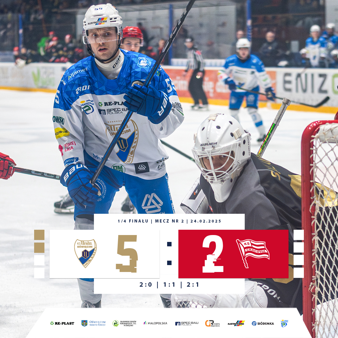 Re-Plast Unia Oświęcim w drugim meczu ćwierćfinału play-off pokonała na własnym lodzie Comarch Cracovię 5:2, będąc drużyną lepszą w każdym elemencie hokejowego rzemiosła.